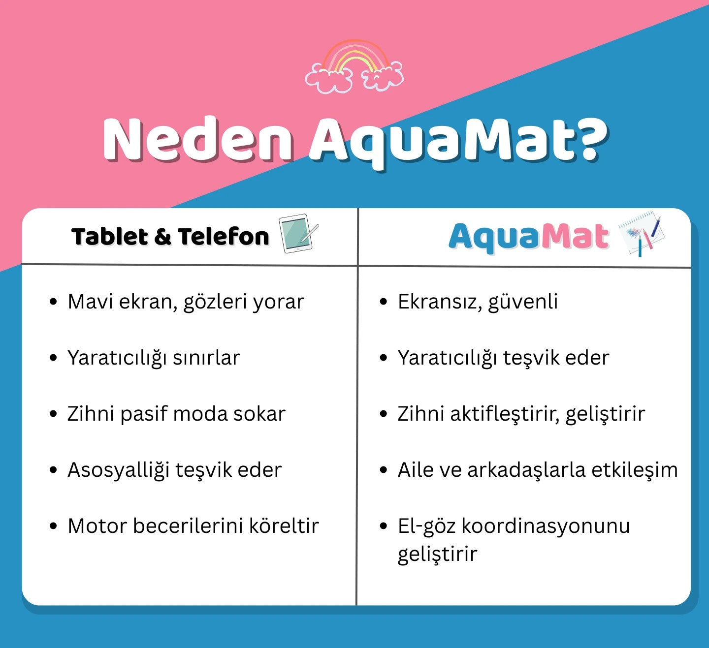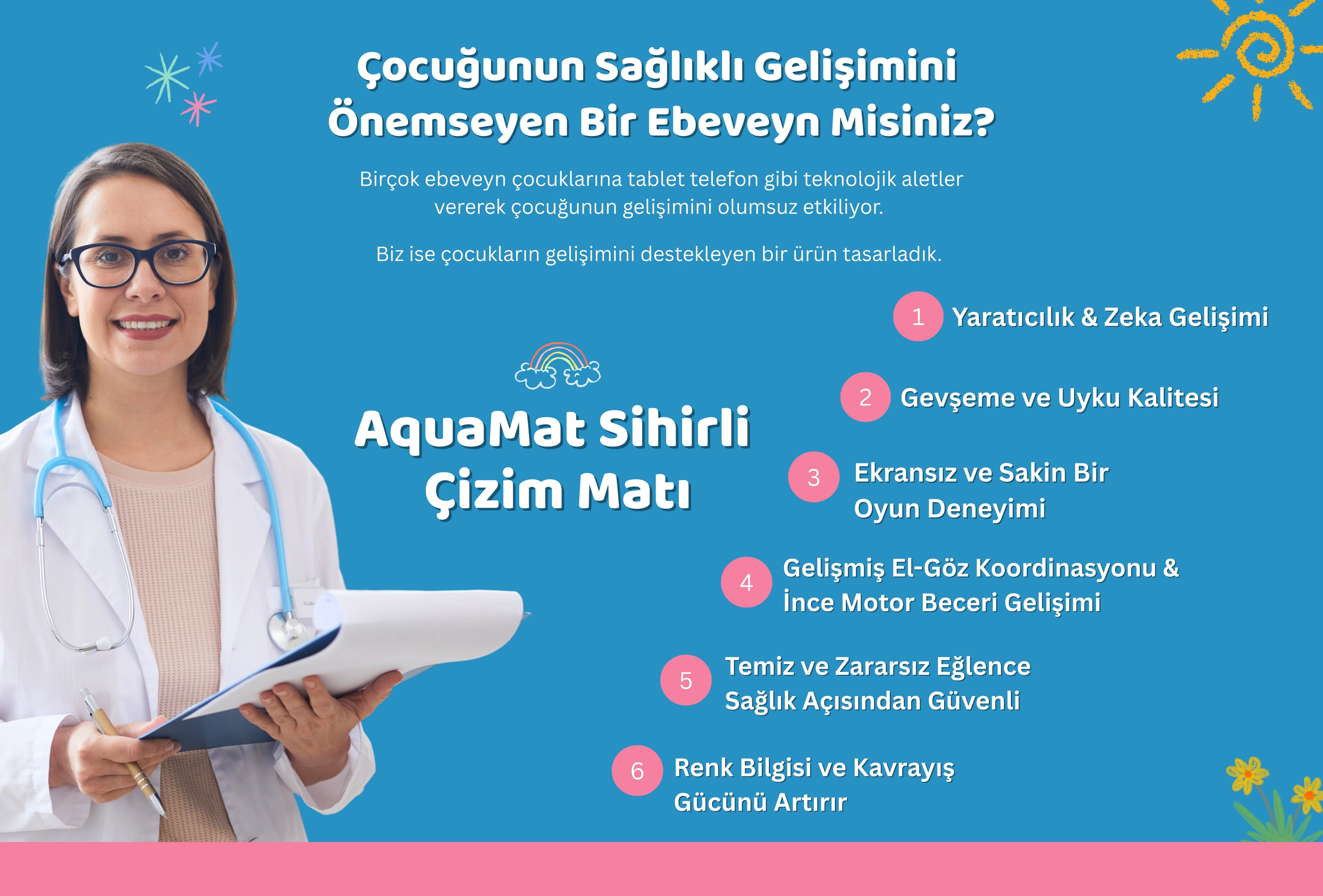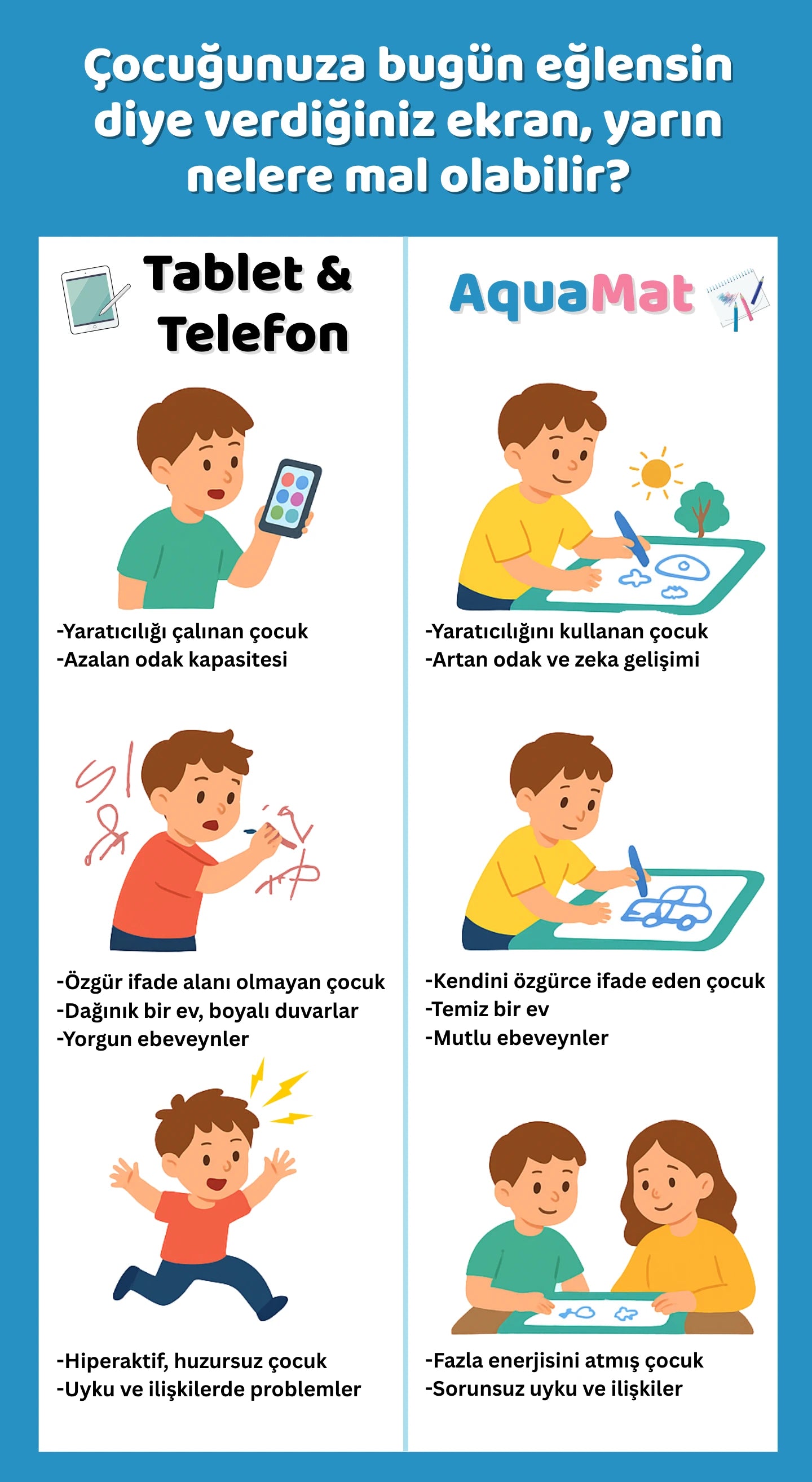 Ürünümüz su bazlı olduğundan 10dk içinde kuruduğunda çizimler kaybolur. Çocuğunuz da oynamaya sorunsuzca tekrar başlayabilir!